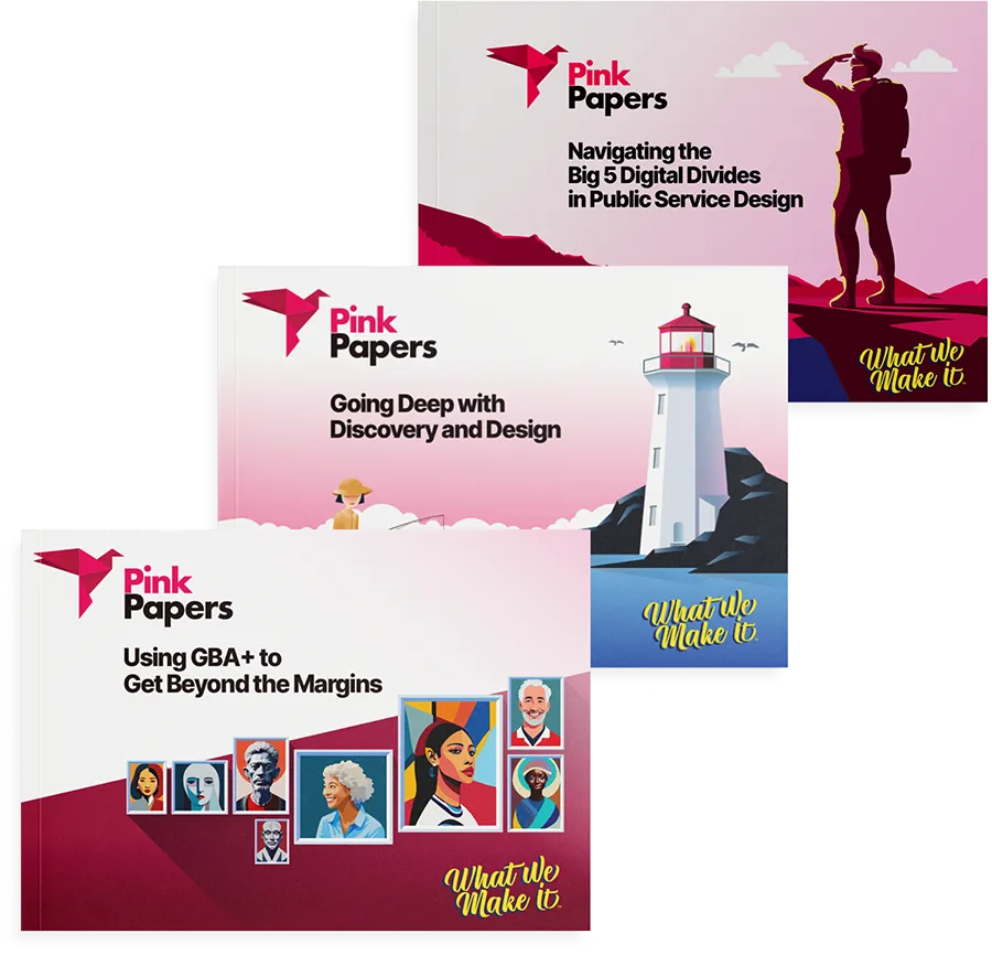 Explore the intersections of creativity, technology, diversity, and user-centricity with our Pink Papers Series, tailored for Government audiences thinking about and implementing digital transformation. What We Make It Pink Papers highlight our approach and thinking on key aspects of Service Design practice, and offer insights to consider in your next project.